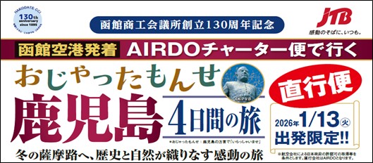 函館空港⇔鹿児島空港 往復直行チャーター便