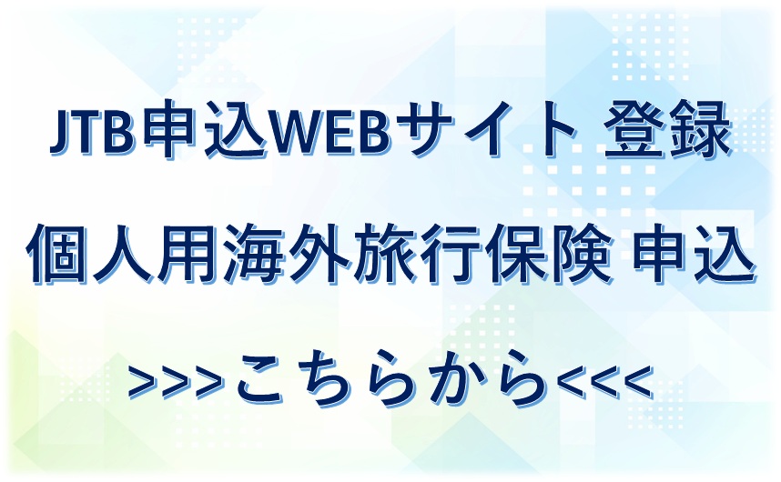「JTB申込WEBサイト登録」「個人用旅行保険申込」ここからできます!