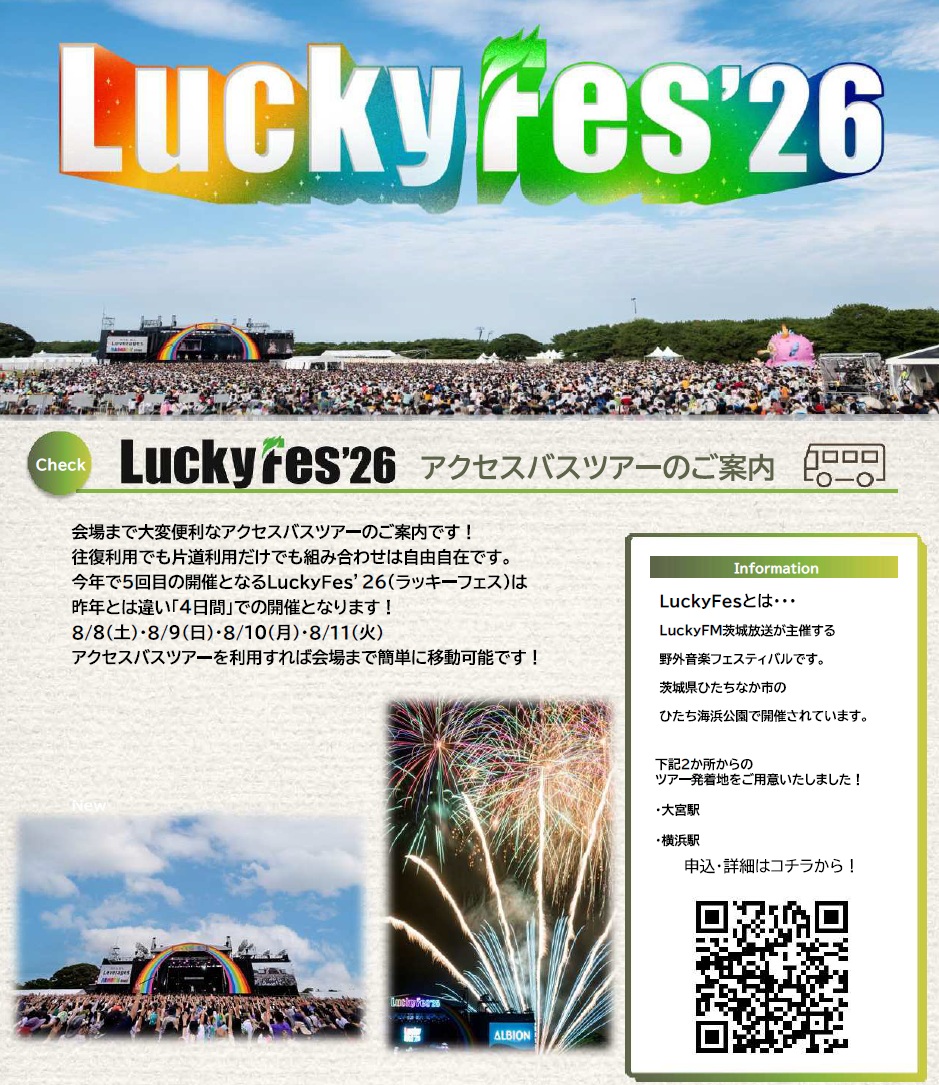 今年で5回目の開催となるLuckyFes'26(ラッキーフェス)は昨年とは違い【4日間】8/8(土)・8/9(日)・8/10(月)・8/11(火)での開催となります!