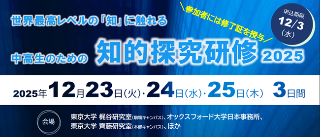 『中高生のための 知的探究研修2025』募集開始!New!