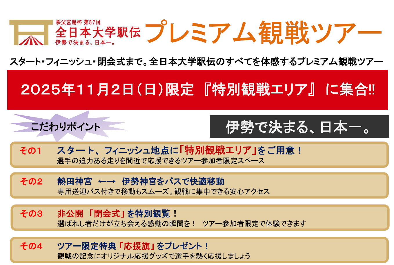 ▶スタート・フィニッシュ・閉会式まで。全日本大学駅伝のすべてを体感するプレミアム観戦ツアーです!