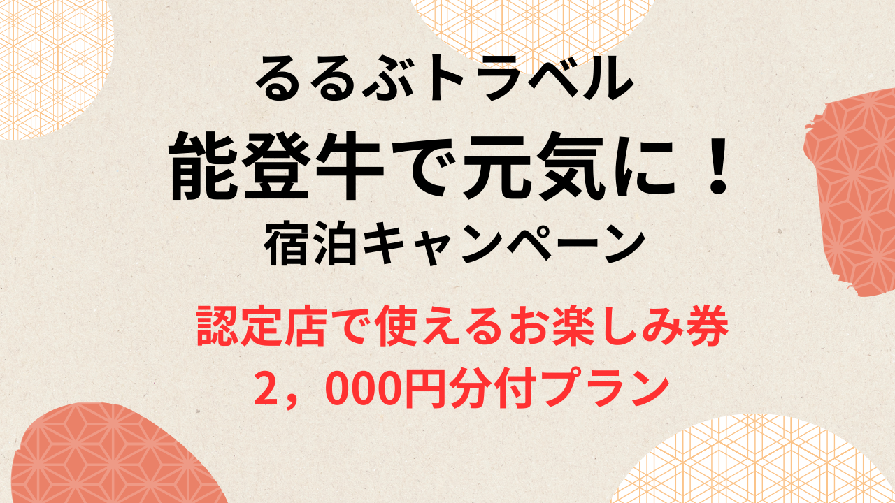 「るるぶトラベル」能登牛で元気に!認定店で使えるお楽しみ券2,000円分付プランNew!