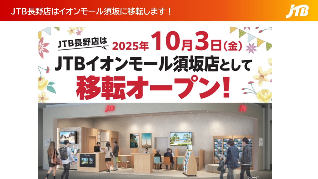 JTB長野店は10月3日(金)にイオンモール須坂に移転します!New!