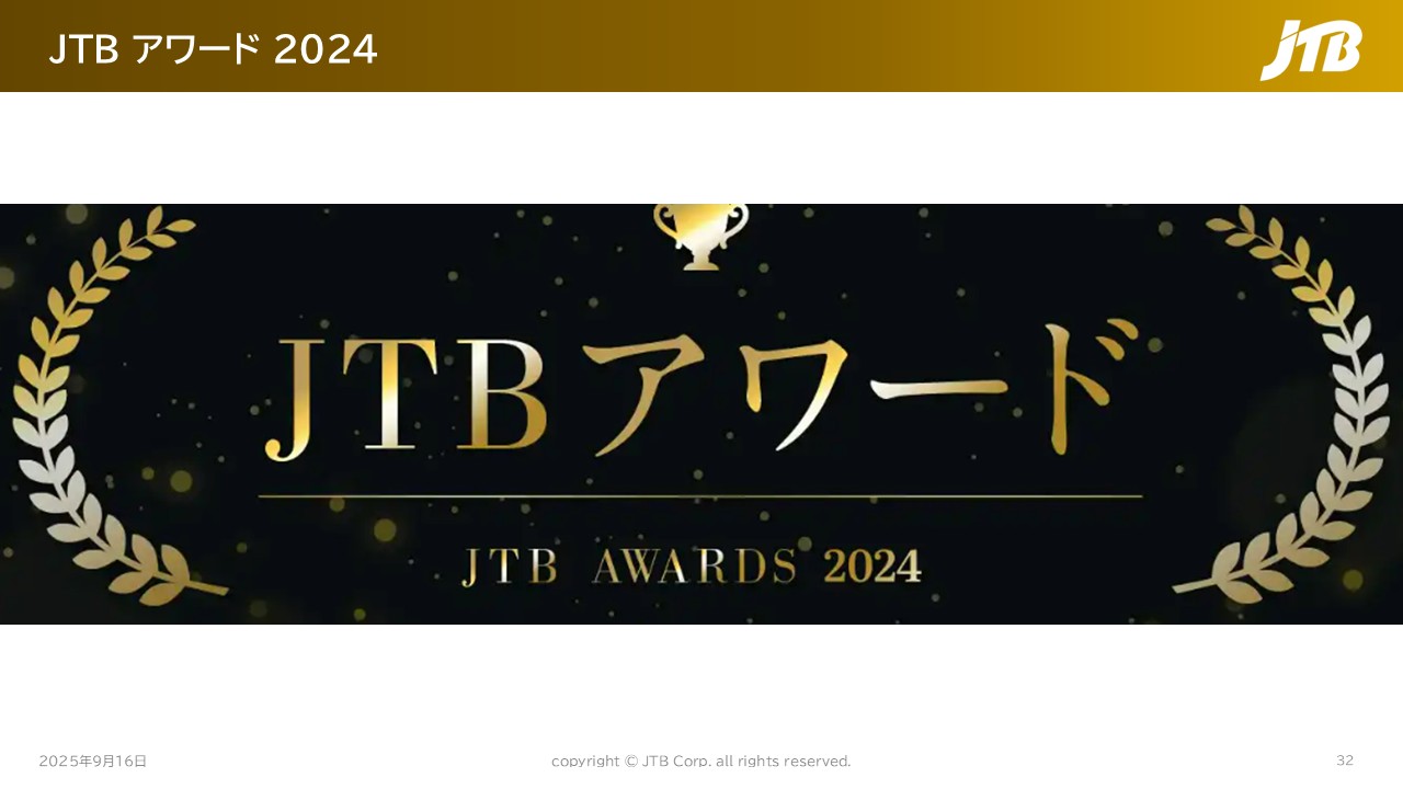 「JTBアワード」はJTBの店頭・Web・コールセンター等、複数の販売チャネルにおいて昨年度(2024年4月~2025年3月)、お客様から高い支持を得た宿泊施設を表彰するイベントです。
