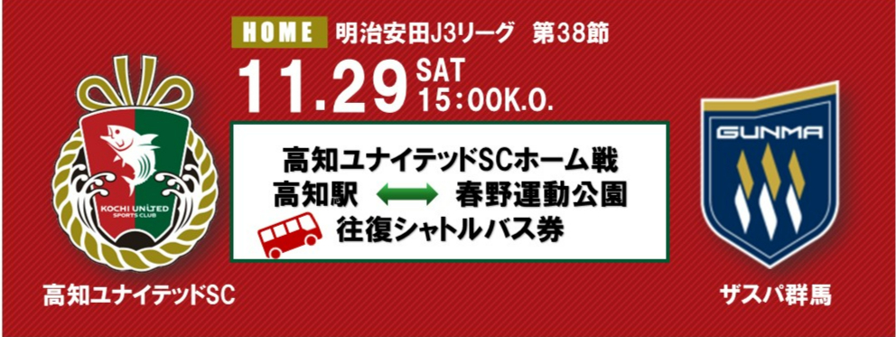 【11/29(土)高知ユナイテッドSC vs ザスパ群馬戦】高知駅~春野運動公園往復シャトルバスNew!
