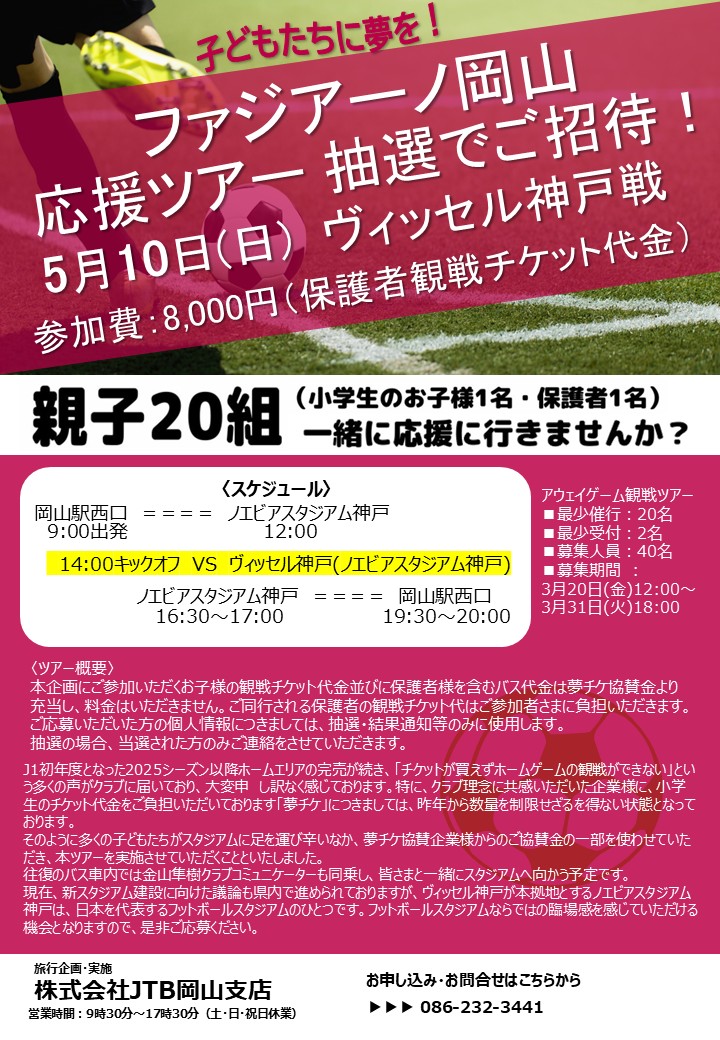ファジアーノ岡山応援ツアー抽選【お問い合わせ先】