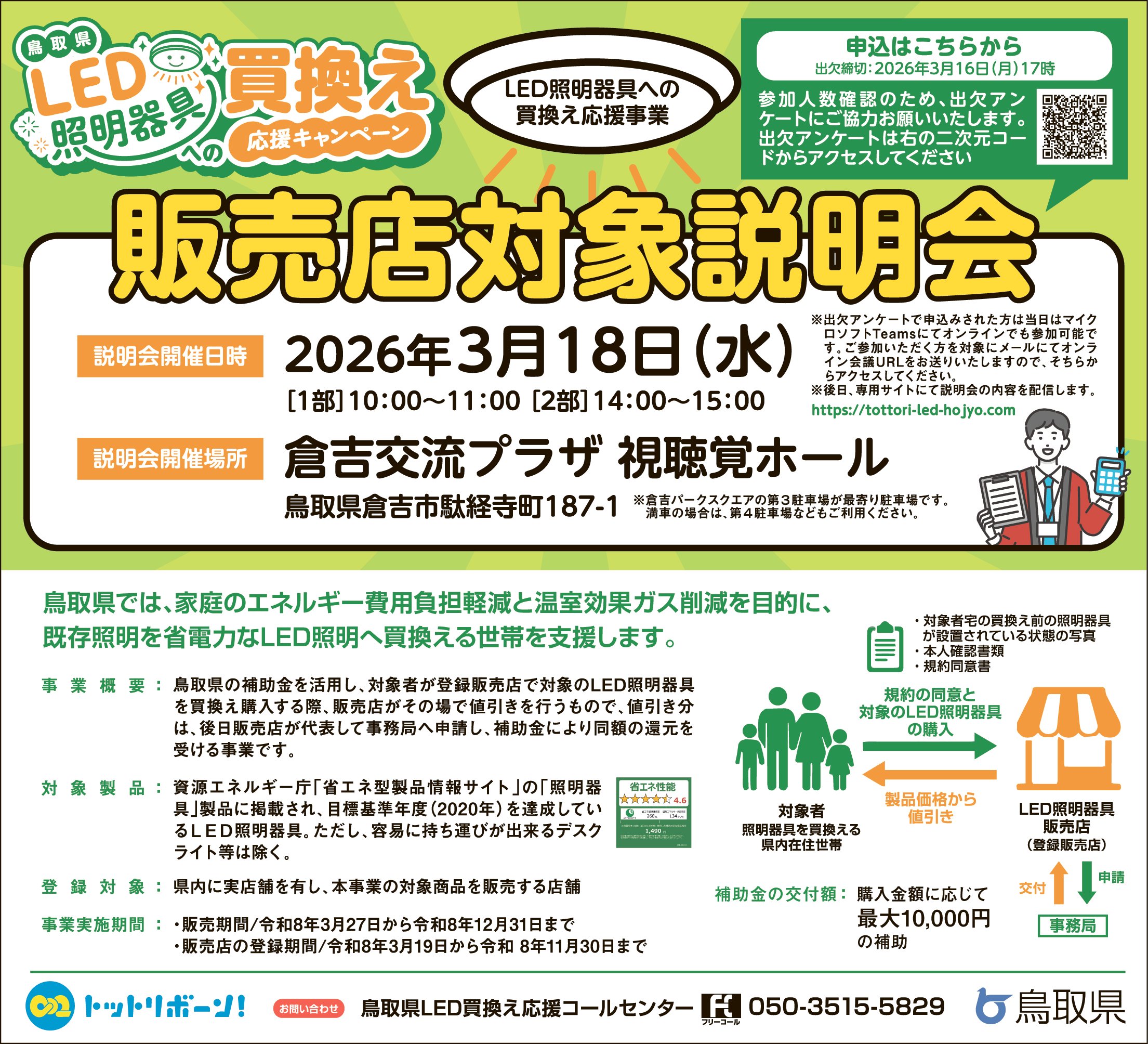 3/18(水)鳥取県「LED照明器具買換えキャンペーン」販売店対象 説明会開催