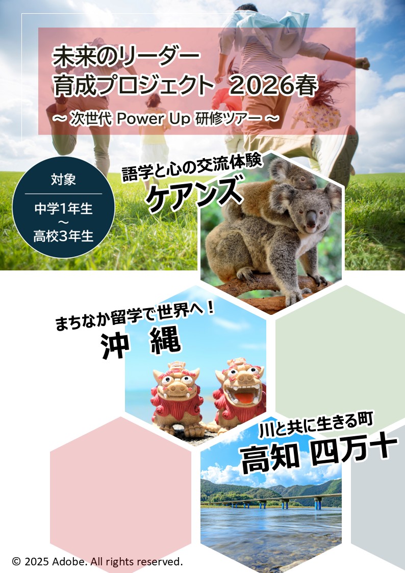 オーストラリア・ケアンズでは、雄大な自然に囲まれながら英語を学び、異文化に触れる充実の研修。沖縄では、温かなホームステイで現地の暮らしを体験しながら、コミュニケーション力を育みます。さらに高知では、小学生も参加できる民泊体験で、日本の伝統や地域文化を親子で楽しめます。 全プランとも、安心のサポート体制と引率付きで、初めての海外・国内体験でも心配ありません。学びと感動が詰まった春休みを、ぜひJTBと一緒に過ごしましょう!